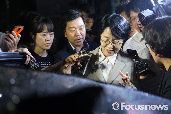 (서울=포커스뉴스) 국민의당 선거 홍보비 리베이트 수수 의혹 사건 관련 사전구속영장이 발부됐던 박선숙 국민의당 의원이 12일 오전 서울 마포구 서부지검에서 구속영장이 기각돼 귀가하고 있다.