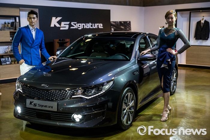 (서울=포커스뉴스) 12일 오전 서울 강남구 인터와이드 스튜디오에서 열린 '2017 K5, K5 PHEV' 출시 사진 및 영상 발표회에 K5 'Signature' 차량이 전시되어 있다.