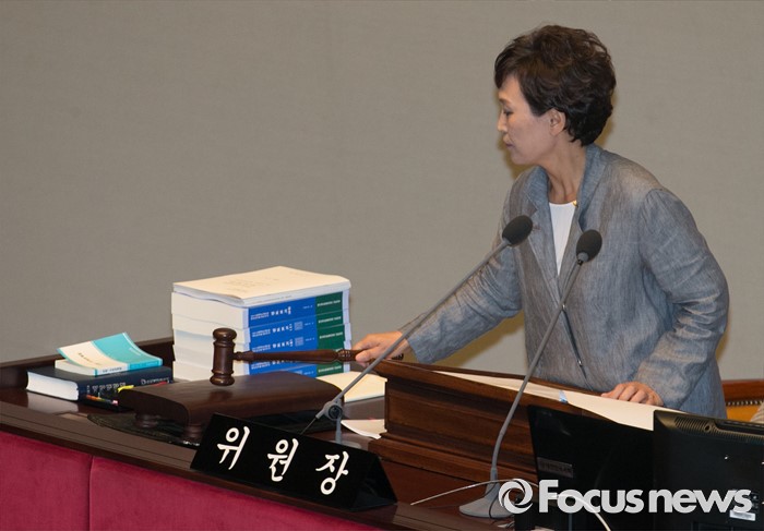 (서울=포커스뉴스) 12일 오전 서울 여의도 국회에서 2015회계연도 결산을 위해 열린 예산결산특별위원회 전체회의에 참석한 김현미 위원장이 개의 선언을 하고 있다.