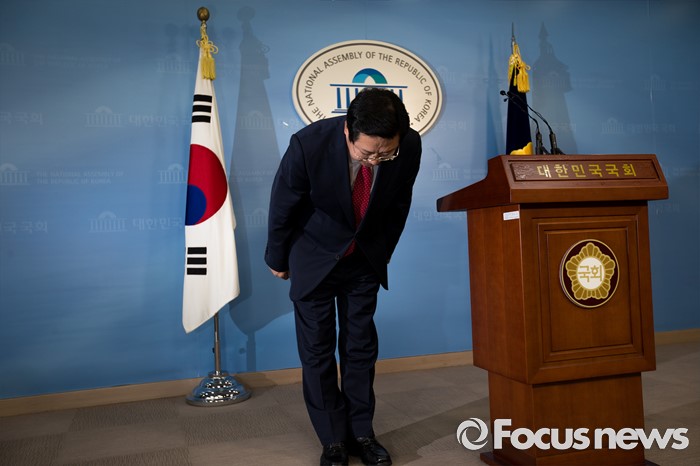 (서울=포커스뉴스) 이장우 새누리당 의원이 12일 오전 서울 여의도 국회에서 오는 8월9일 전당대회 최고위원 선거 출마를 선언한 뒤 인사하고 있다.