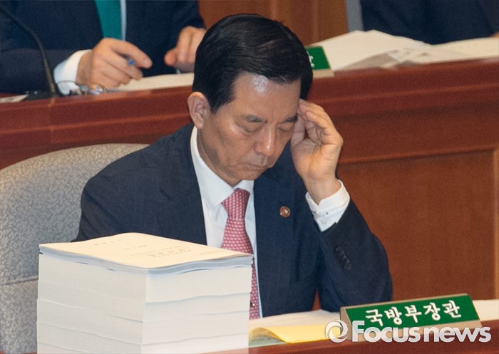 (서울=포커스뉴스) 12일 오전 서울 여의도 국회에서 2015회계연도 결산을 위해 열린 예산결산특별위원회 전체회의에 참석한 한민구 국방부 장관이 생각에 잠겨 있다.