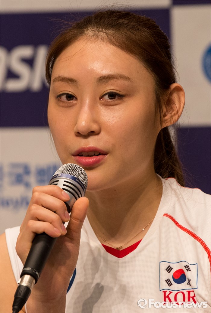 (진천=포커스뉴스) 12일 오전 충북 진천 선수촌 대강당에서 열린 '대한민국 여자배구 국가대표선수단 기자회견'에 참석한 배유나 선수가 각오를 밝히고 있다. 이날 기자회견을 가진 여자배구 선수단은 리우올림픽을 대비해 23일 네덜란드로 전지훈련을 떠날 계획이다.
