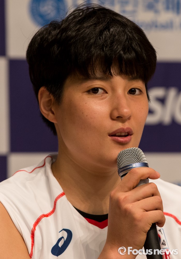 (진천=포커스뉴스) 12일 오전 충북 진천 선수촌 대강당에서 열린 '대한민국 여자배구 국가대표선수단 기자회견'에 참석한 김희진 선수가 각오를 밝히고 있다. 이날 기자회견을 가진 여자배구 선수단은 리우올림픽을 대비해 23일 네덜란드로 전지훈련을 떠날 계획이다.