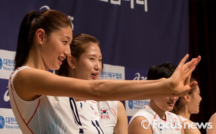 (진천=포커스뉴스) 12일 오전 충북 진천 선수촌 대강당에서 열린 '대한민국 여자배구 국가대표선수단 기자회견'에 참석한 김연경 선수가 포즈를 취하고 있다. 이날 기자회견을 가진 여자배구 선수단은 리우올림픽을 대비해 23일 네덜란드로 전지훈련을 떠날 계획이다.