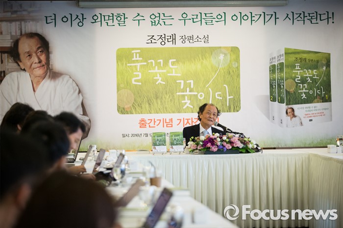 (서울=포커스뉴스) 조정래 소설가가 12일 오전 서울 중구 한국프레스센터에서 '풀꽃도 꽃이다' 출간기념 기자간담회를 하고 있다.