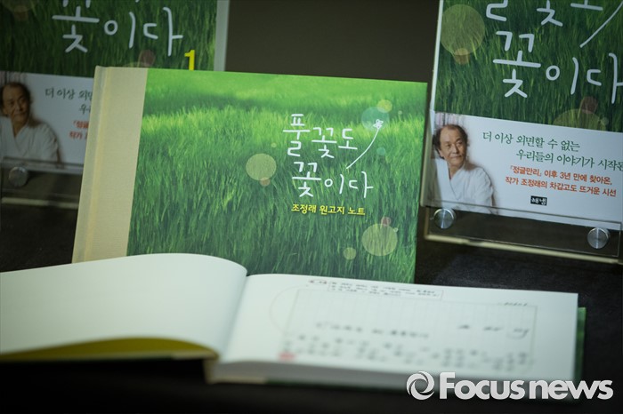 (서울=포커스뉴스) 12일 오전 서울 중구 한국프레스센터에서 열린 조정래 소설가의 신간 출간기념 기자간담회에 조정래 작가의 원고지 노트가 놓여져 있다.