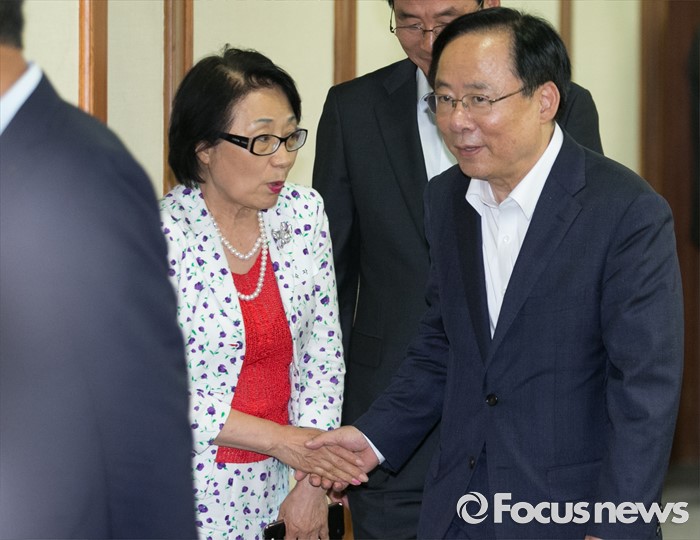 (서울=포커스뉴스) 전당대회 출마를 선언한 이주영 새누리당 의원이 12일 오후 서울 여의도 중소기업중앙회에서 열린 2016 양성평등 포럼에 참석해 참석자들과 인사하고 있다.