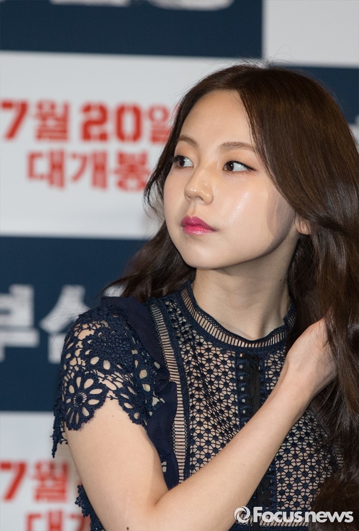(서울=포커스뉴스) 12일 오후 서울 광진구 롯데시네마 건대입구점에서 열린 영화 '부산행' 언론시사회에 참석한 배우 안소희가 머리카락을 정돈하고 있다.