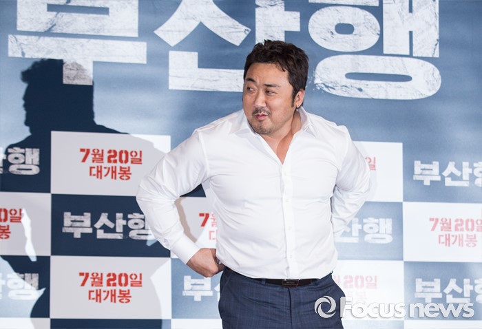 (서울=포커스뉴스) 12일 오후 서울 광진구 롯데시네마 건대입구점에서 열린 영화 '부산행' 언론시사회에 참석한 배우 마동석이 포토타임 전 의상을 점검하고 있다.