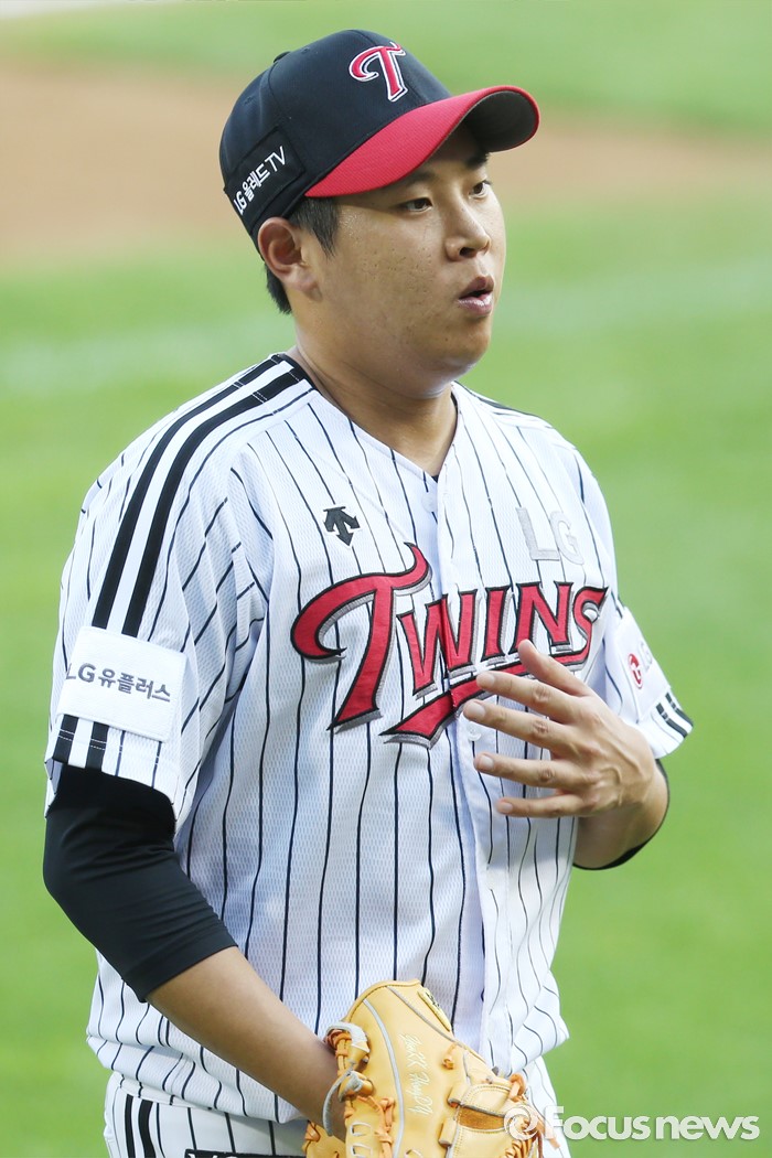 (서울=포커스뉴스) 12일 서울 잠실구장에서 열린 2016 프로야구 한화-LG 경기에서 LG 선발투수 유경국이 1회 수비를 마치고 덕아웃으로 들어가며 깊은 숨을 쉬고 있다.