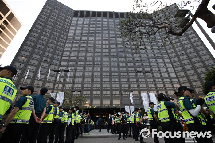 | △ '호텔 둘러싼 경찰병력, 왜?' |