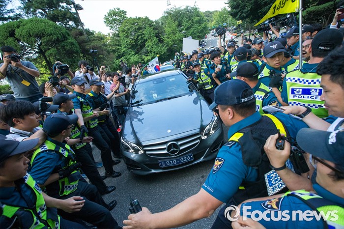 | △ 외교차량 호위하는 경찰병력 |
