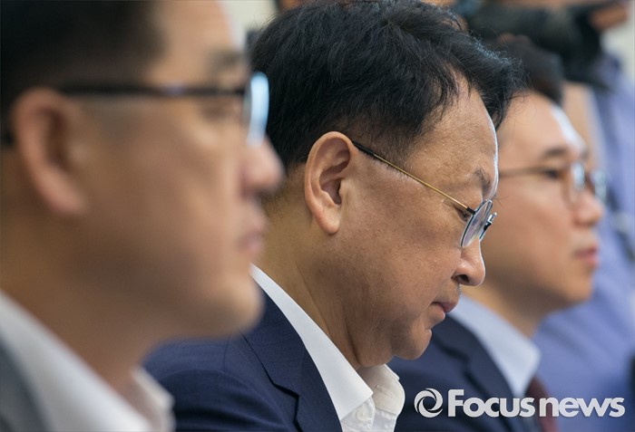 (서울=포커스뉴스) 13일 오전 서울 여의도 국회 귀빈식당에서 열린 더불어민주당 저출산 해소를 위한 국민연금 공공투자 특별위원회 1차 정책협의회에 참석한 유일호 경제부총리 겸 기획재정부 장관이 의원들의 발언을 듣고 있다.