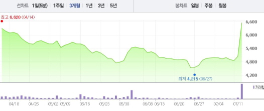 한빛소프트는 13일 오전 9시20분 현재 전 거래일 대비 29.96%(1510원) 상승한 6550원에 거래되고 있다. 한빛소프트는 전 거래일에도 3.92%의 상승폭을 기록했다.