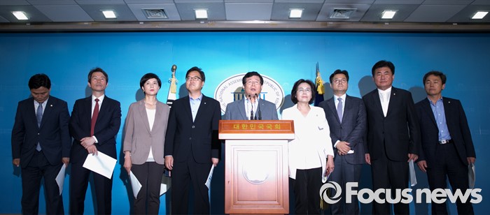 (서울=포커스뉴스) 13일 오전 서울 여의도 국회 정론관에서 더불어민주당 민주평화국민연대(이하 민평련) 소속 의원들이 한반도 및 동북아지역의 평화와 협력을 위협하는 사드배치 반대 기자회견을 하고 있다.