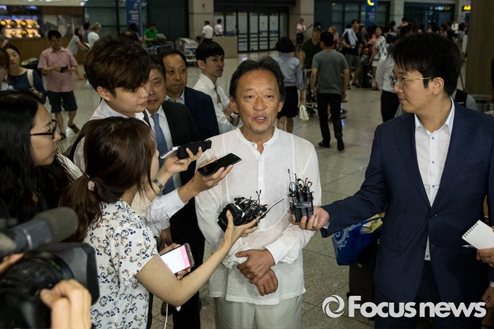 (인천=포커스뉴스) 명예훼손과 항공료 횡령 등 의혹으로 고소·고발된 정명훈 서울시향 감독이 검찰조사를 앞두고 13일 오전 인천 중구 인천공항을 통해 입국해 취재진의 질문에 답하고 있다.