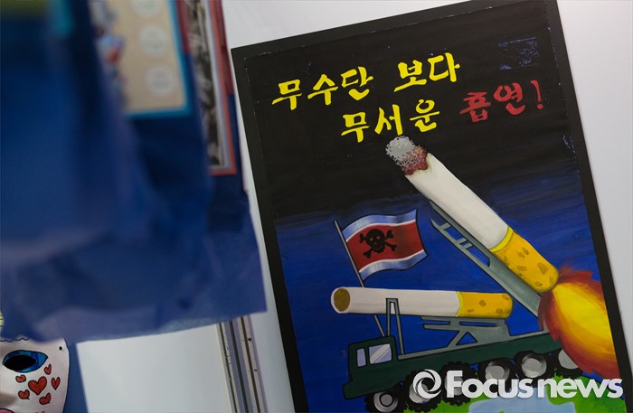 (서울=포커스뉴스) 13일 오전 서울 송파구 잠실학생체육관에서 열린 학교 흡연예방 어울림 축제에서 학생들이 만든 금연 홍보물이 전시돼 있다.