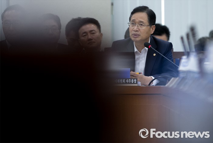 (서울=포커스뉴스) 13일 오전 서울 여의도 국회에서 열린 안전행정위원회 전체회의에 참석한 김용희 중앙선거관리위원회 사무총장이 의원들의 질의에 답하고 있다.