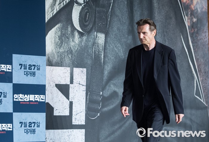 (서울=포커스뉴스) 13일 오전 서울 영등포구 콘래드 서울 호텔에서 열린 영화 '인천상륙작전' 기자간담회에 참석한 배우 리암 니슨이 포토타임을 위해 이동하고 있다.