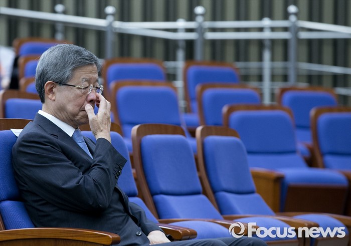 (서울=포커스뉴스) 13일 오후 서울 여의도 국회에서 열린 포용적 시장경제와 새누리당의 진로 토크 콘서트에 참석한 김희옥 혁신비대위원장이 생각에 잠겨 있다.