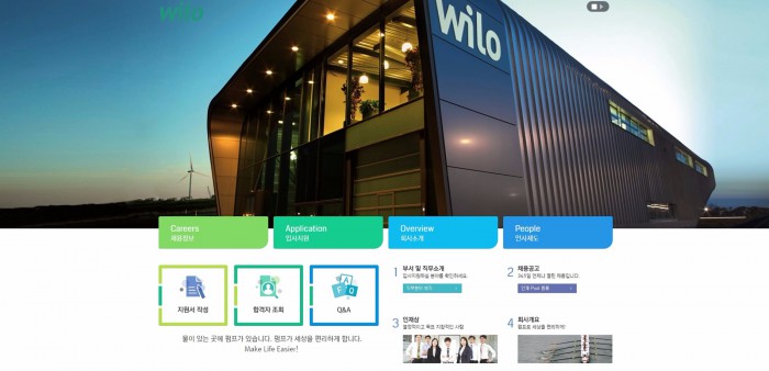 이 밖에도 영상과 이미지 등을 통해 회사에 대한 안내와 함께 원하는 인재상, 인재 육성 프로그램, 직급 체계, 평가 및 인센티브, 휴일·휴가 시스템, 복리 후생 등 인사 제도에 대한 상세한 소개를 담아 윌로펌프 지원 시 궁금한 정보를 한 눈에 볼 수 있도록 했다.