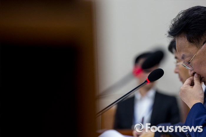 (서울=포커스뉴스) 유일호 경제부총리 겸 기획재정부 장관이 13일 오후 서울 여의도 국회에서 열린 '기획재정위원회 전체회의'에 참석해 의원들의 대우조선해양에 대한 수사자료와 회계법인의 실사보고서 제출 요구하며 정상 회의 시작을 미루자 난감해 하고 있다. 이날 기재위 여야 의원들은 대우조선해양과 관련된 자료를 보지 않고는 조선업 구조조정에 대한 추경예산 편성이 어렵다는 입장을 밝혔다.