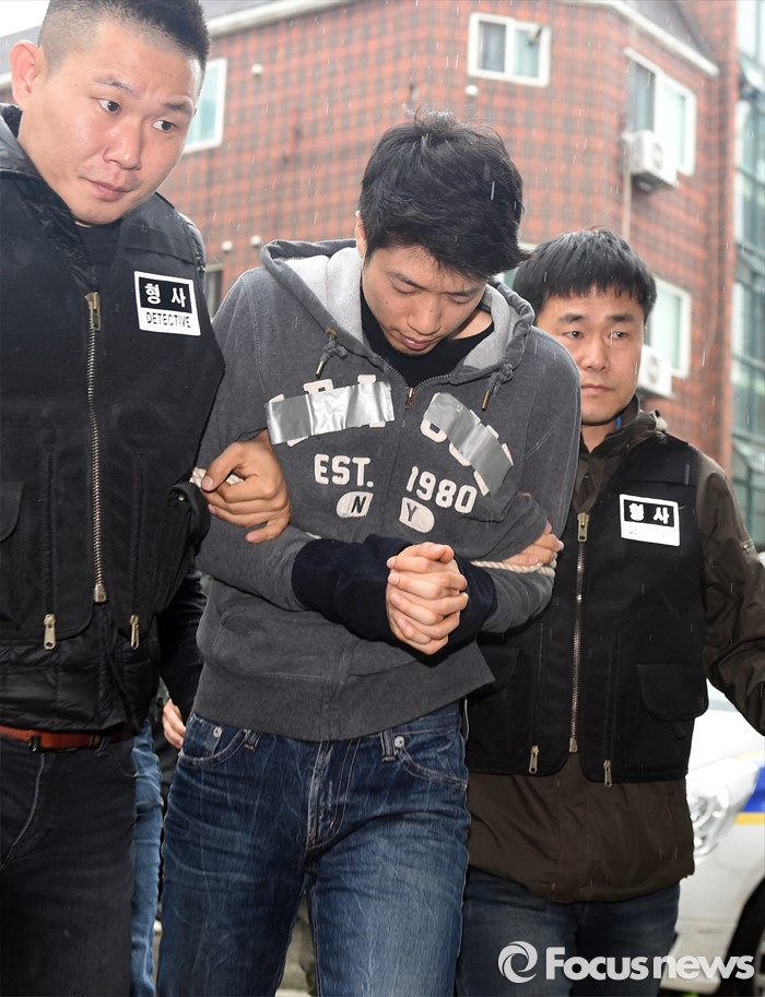 조씨는 지난 4월13일 오전 1시쯤 인천 연수구 집에서 함께 살던 최모(40)씨를 미리 준비한 흉기로 찌르고 둔기로 머리를 내리쳐 살해한 뒤 시신을 훼손해 대부도 방조제 주변 배수로에 유기한 혐의로 구속기소됐다.(인천=포커스뉴스) 안산 대부도 토막살인의 용의자 조성호가 10일 오전 인천 연수구 연수동의 주거지에서 현장검증을 위해 범행현장으로 이동하고 있다. 2016.05.10 김인철 기자