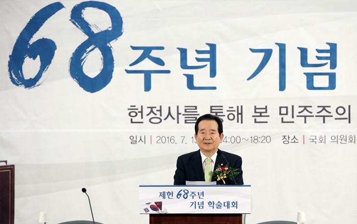 | △ 정세균 의장, 제헌 68주년 기념 학술대회 참석 |