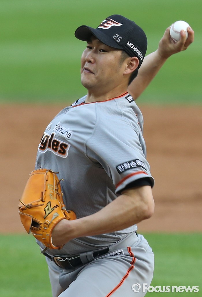 (서울=포커스뉴스) 13일 서울 잠실구장에서 열린 2016 프로야구 한화-LG 경기에서 1회말 한화 선발투수 송은범이 투구하고 있다.