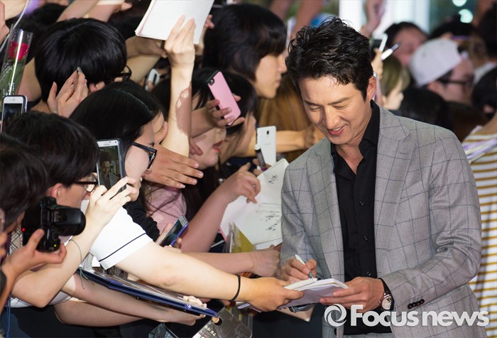 (서울=포커스뉴스) 13일 오후 서울 영등포구 타임스퀘어에서 열린 영화 '인천상륙작전' 레드카펫 행사에 참석한 배우 정준호가 팬들에게 사인 하고 있다.