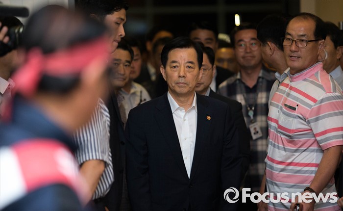 (서울=포커스뉴스) 한민구 국방부 장관이 13일 오후 서울 용산구 국방컨벤션센터에서 사드 배치에 항의 방문 중인 김항곤 성주군수 등 사회단체장 및 군민들을 만나기 위해 국방컨벤션센터로 들어서고 있다. 국방부는 이날 경북 성주군을 고고도 미사일 방어(사드·THAAD)체계 배치 지역이라고 공식 발표했다.