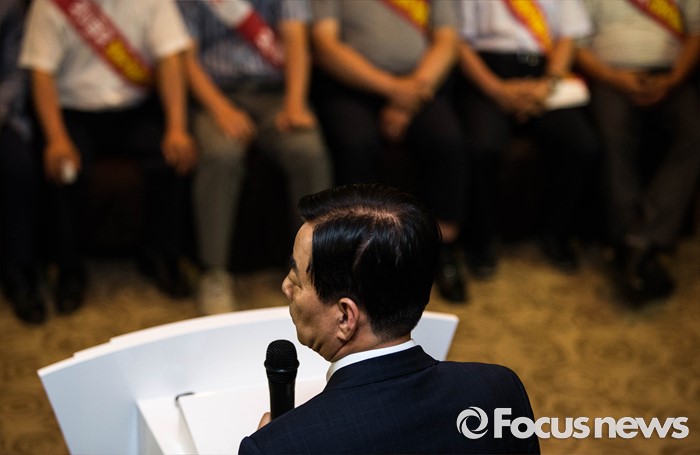 (서울=포커스뉴스) 한민구 국방부 장관이 13일 오후 서울 용산구 국방컨벤션센터에서 사드 배치에 항의 방문 중인 김항곤 성주군수 등 사회단체장 및 군민들에게 사과 발언을 하고 있다. 국방부는 이날 경북 성주군을 고고도 미사일 방어(사드·THAAD)체계 배치 지역이라고 공식 발표했다.