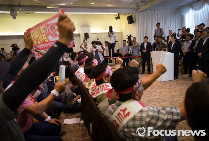 (서울=포커스뉴스) 한민구 국방부 장관이 13일 오후 서울 용산구 국방컨벤션센터에서 사드 배치에 항의 방문 중인 김항곤 성주군수 등 사회단체장 및 군민들과 대화하고 있다. 국방부는 이날 경북 성주군을 고고도 미사일 방어(사드·THAAD)체계 배치 지역이라고 공식 발표했다.