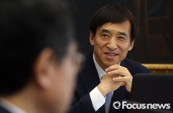 (서울=포커스뉴스) 14일 오전 서울 중구 한국은행에서 열린 제14차 금융통화위원회의에 참석한 이주열 한국은행 총재가 미소 짓고 있다.
