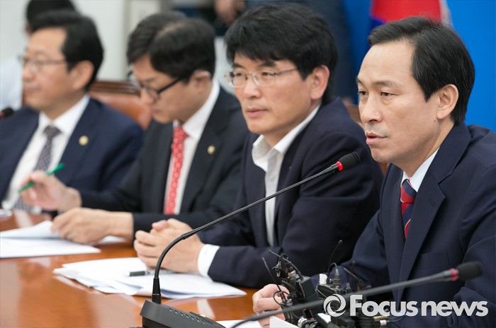 (서울=포커스뉴스) 14일 오전 서울 여의도 국회에서 열린 더불어민주당 정책조정회의에 참석한 우상호 원내대표가 모두발언을 하고 있다.