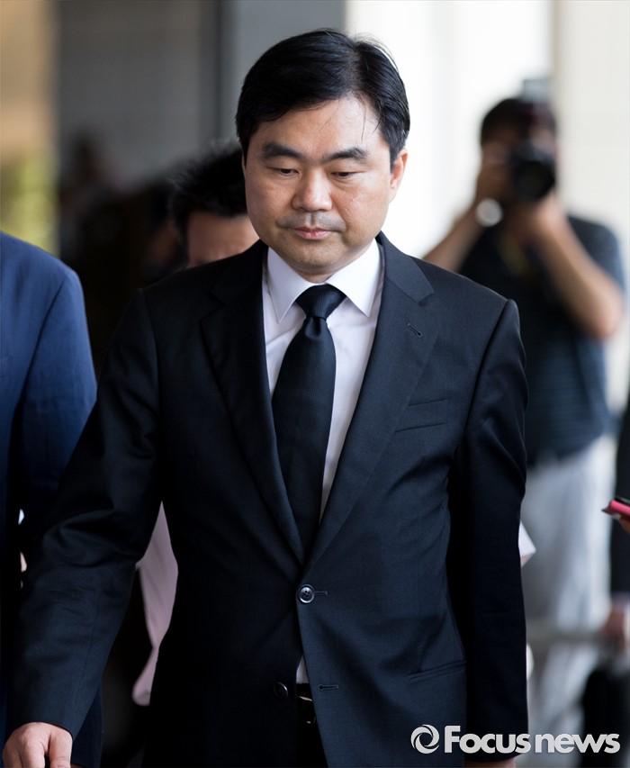 (서울=포커스뉴스) '주식 대박' 논란에 휩싸인 진경준 검사장이 14일 오전 서울 서초구 서울중앙지방검찰청으로 출석하고 있다.