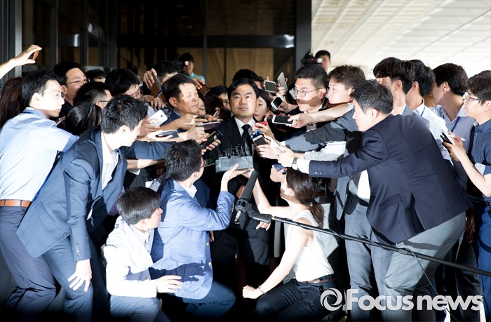 (서울=포커스뉴스) '주식 대박' 논란에 휩싸인 진경준 검사장이 14일 오전 서울 서초구 서울중앙지방검찰청으로 출석하고 있다.