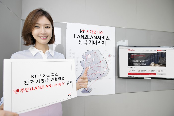 (서울=포커스뉴스) KT가 전국에 산재한 고객사의 본사와 지사간 네트워크를 연결하는 전국형 서비스 ‘기가오피스 랜투랜(LAN2LAN)’ 서비스를 14일 출시했다.