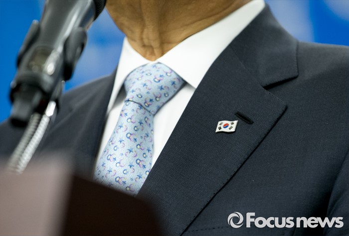 (서울=포커스뉴스) 14일 오전 서울 여의도 국회도서관에서 열린 민주적 여론형성을 위한 법제도 개선사항 정책토론회에 참석한 김종인 더불어민주당 비대위 대표가 국회의원 뱃지 대신 태극기 뱃지를 착용하고 있다.