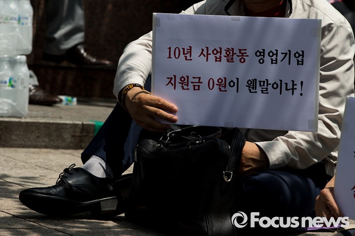 (서울=포커스뉴스) 14일 오후 서울 영등포구 국회의사당역 인근에서 개성공단 비상대책위원회원들이 정부의 폐쇄 조치에 따른 재산권 보호를 촉구하며 집회를 하고 있다.