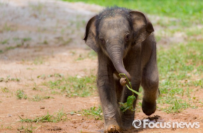 (과천=포커스뉴스) 14일 오후 경기도 과천 서울대공원에서 지난달 24일에 태어난 새끼 아시아 코끼리(암컷)가 야외 방사장을 뛰놀고 있다. 이 아기코끼리는 '멸종위기에 처한 야생 동식물의 국제 거래에 관한 협약(CITES)' 1급 보호종으로 지정된 아시아코끼리다.