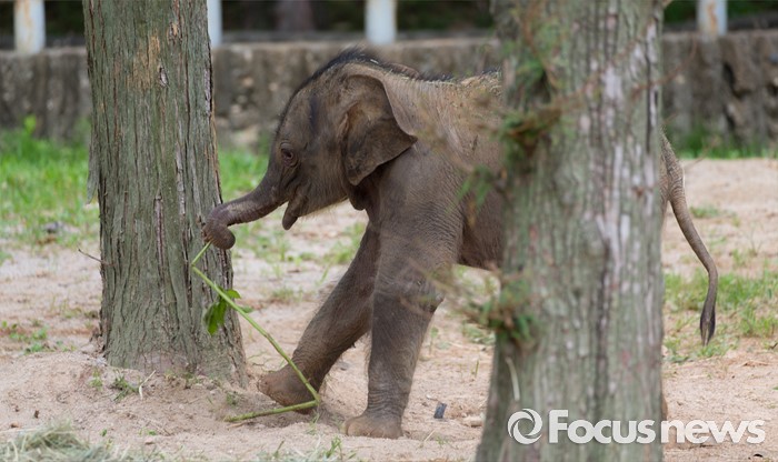 (과천=포커스뉴스) 14일 오후 경기도 과천 서울대공원에서 지난달 24일에 태어난 새끼 아시아 코끼리(암컷)가 야외 방사장을 뛰놀고 있다. 이 아기코끼리는 '멸종위기에 처한 야생 동식물의 국제 거래에 관한 협약(CITES)' 1급 보호종으로 지정된 아시아코끼리다.