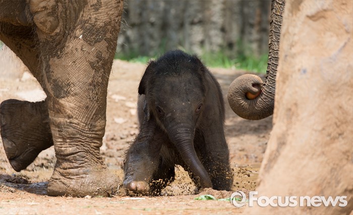 (과천=포커스뉴스) 14일 오후 경기도 과천 서울대공원에서 지난달 24일에 태어난 새끼 아시아 코끼리(암컷)가 야외 방사장을 뛰놀고 있다. 이 아기코끼리는 '멸종위기에 처한 야생 동식물의 국제 거래에 관한 협약(CITES)' 1급 보호종으로 지정된 아시아코끼리다.