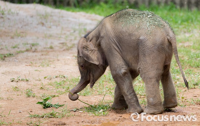 (과천=포커스뉴스) 14일 오후 경기도 과천 서울대공원에서 지난달 24일에 태어난 새끼 아시아 코끼리(암컷)가 야외 방사장을 뛰놀고 있다. 이 아기코끼리는 '멸종위기에 처한 야생 동식물의 국제 거래에 관한 협약(CITES)' 1급 보호종으로 지정된 아시아코끼리다.