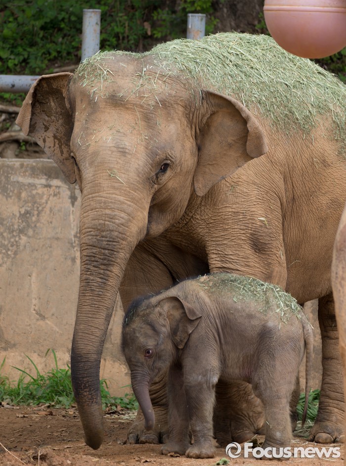 (과천=포커스뉴스) 14일 오후 경기도 과천 서울대공원에서 지난달 24일에 태어난 새끼 아시아 코끼리(암컷)가 가자바(어미)와 함께 야외 방사장을 뛰놀고 있다. 이 아기코끼리는 '멸종위기에 처한 야생 동식물의 국제 거래에 관한 협약(CITES)' 1급 보호종으로 지정된 아시아코끼리다.