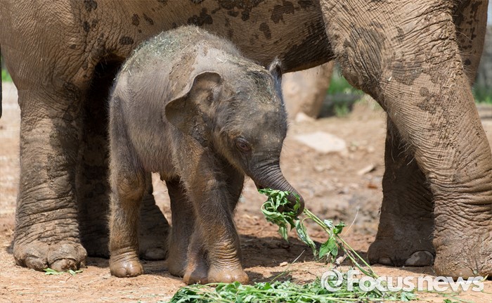 (과천=포커스뉴스) 14일 오후 경기도 과천 서울대공원에서 지난달 24일에 태어난 새끼 아시아 코끼리(암컷)가 야외 방사장을 뛰놀고 있다. 이 아기코끼리는 '멸종위기에 처한 야생 동식물의 국제 거래에 관한 협약(CITES)' 1급 보호종으로 지정된 아시아코끼리다.