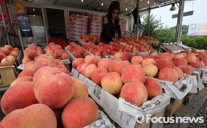 (세종=포커스뉴스) 초복을 사흘 앞둔 14일 세종시 조치원읍 복숭아농장에서 농민이 수확한 복숭아를 정리하고 있다.