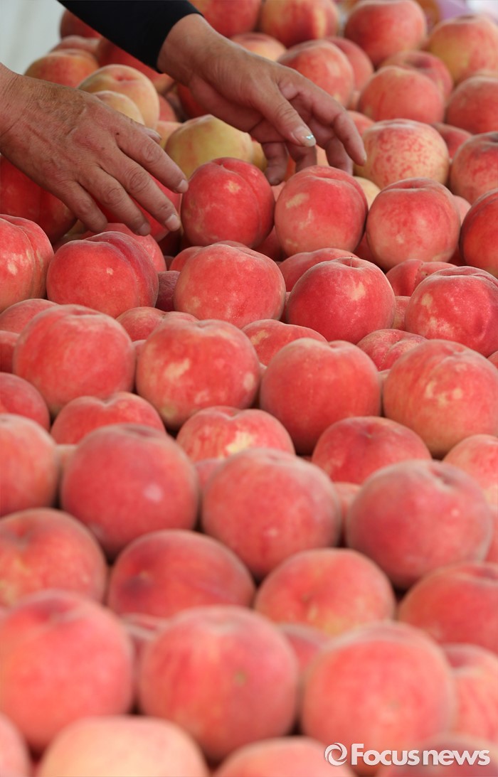 (세종=포커스뉴스) 초복을 사흘 앞둔 14일 세종시 조치원읍 복숭아농장에서 농민이 수확한 복숭아를 정리하고 있다.