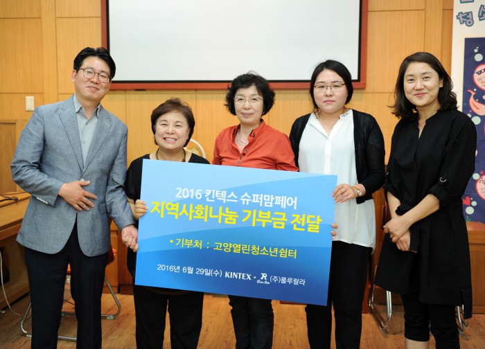 (서울=포커스뉴스) 경기 고양시에 있는 국제 전시·컨벤션 센터인 킨텍스는 '2016 슈퍼맘페어' 행사 수익금 전액을 지역사회공헌단체에 기부했다고 14일 밝혔다.