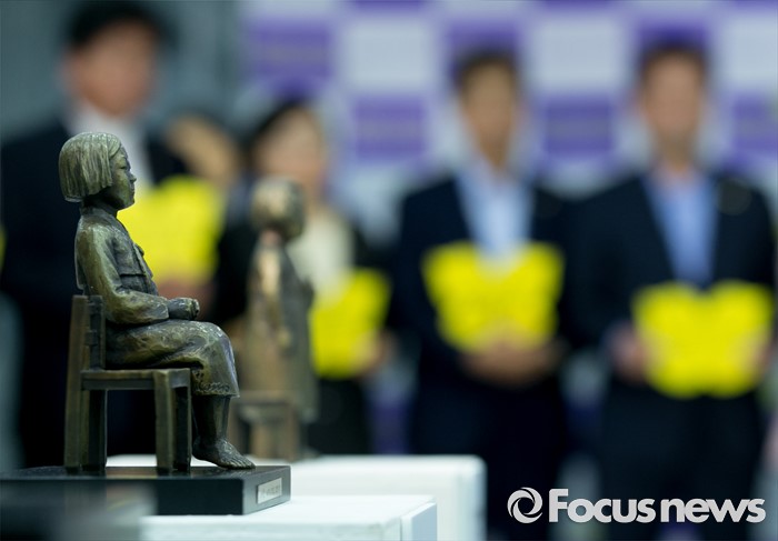 (서울=포커스뉴스)14일 오후 서울 여의도 국회 의원회관에서 열린 12·28 한일합의 무효화와 일본정부의 법적책임이행 촉구를 위한 '진실과 정의는 지지 않습니다' 전시회에 소녀상 관련 작품들이 전시되어 있다.